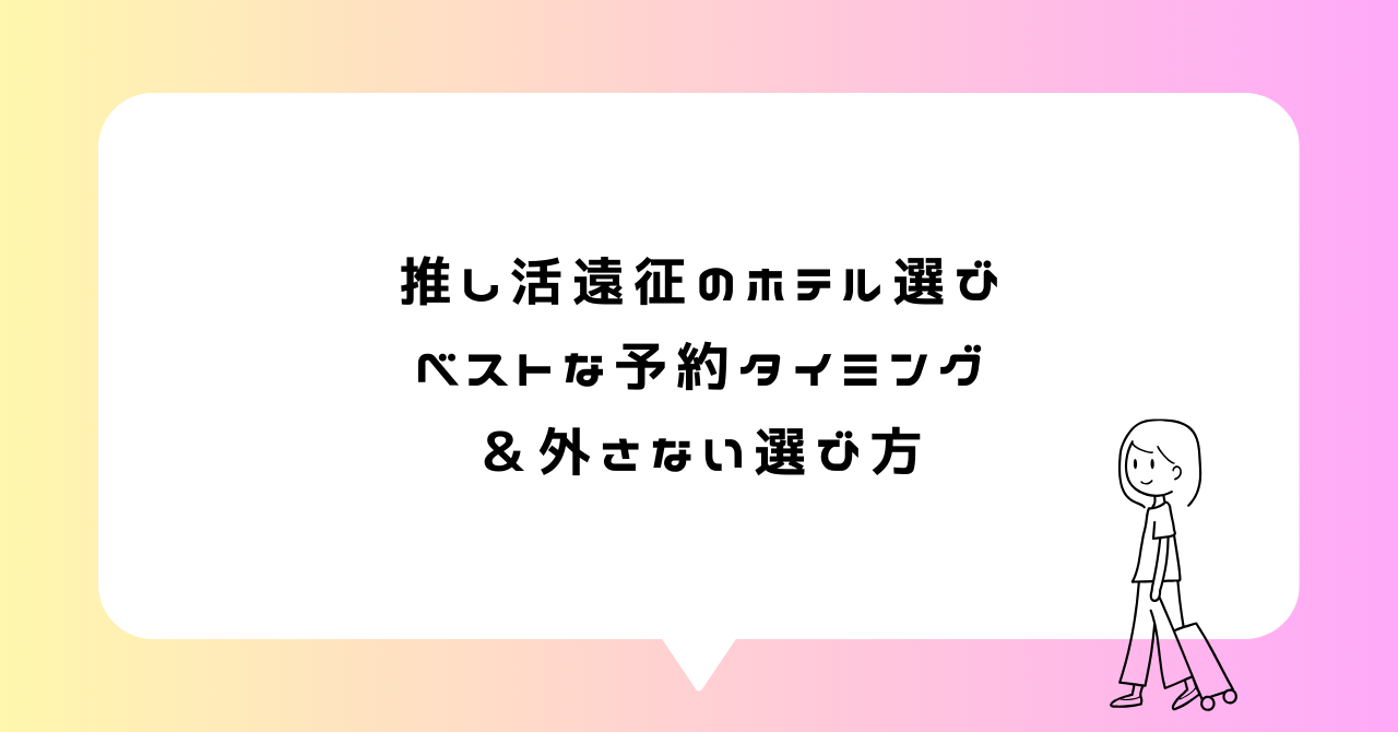 推しのライブやイベントが決まると、ワクワクと同時に気になるのが「遠征のホテル問題」。